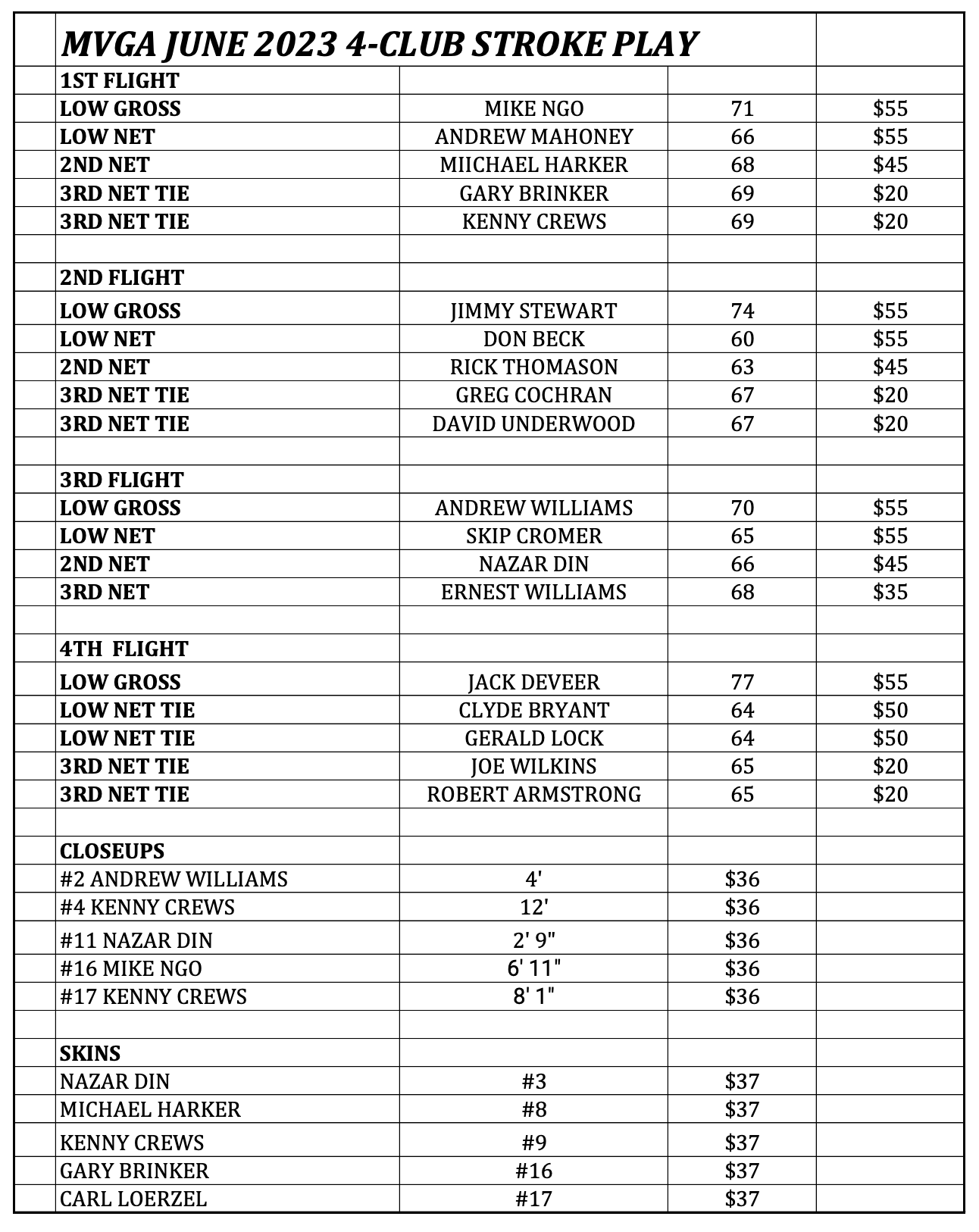 Scores and prizes are shown below.