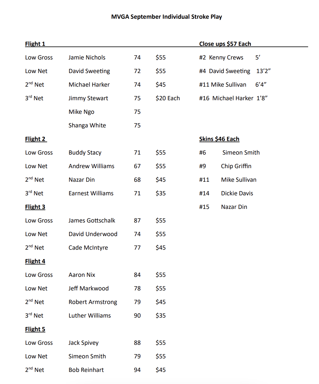 Scores and prizes are shown below.