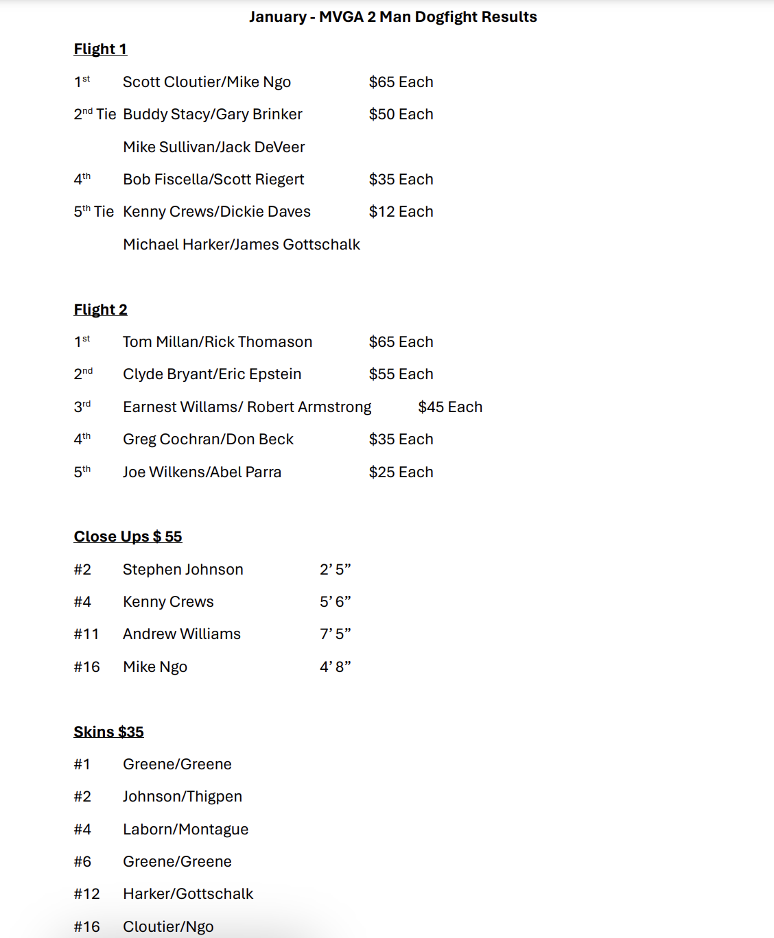 Monthly Tournaments