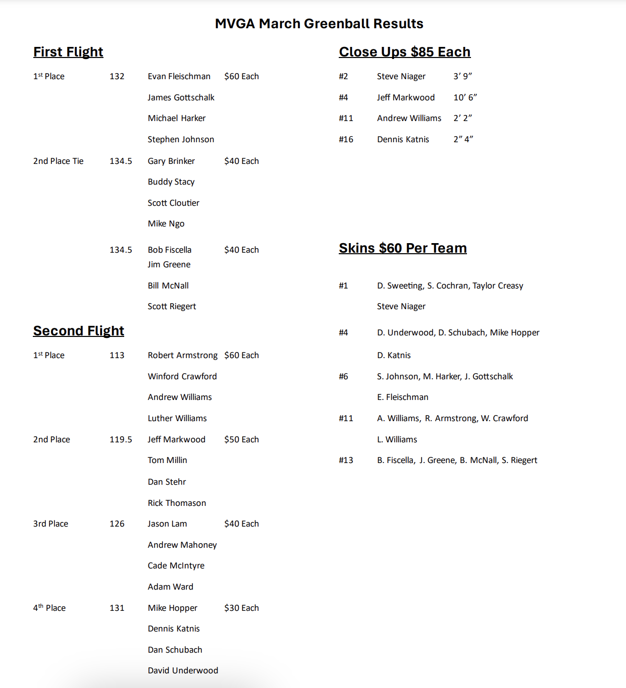 Monthly Tournaments